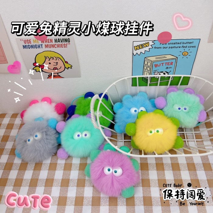 本物のウサギの毛のウサギの精霊の小さい毛のボールは自動車の鍵を掛けて機械の子供を捕まえます。