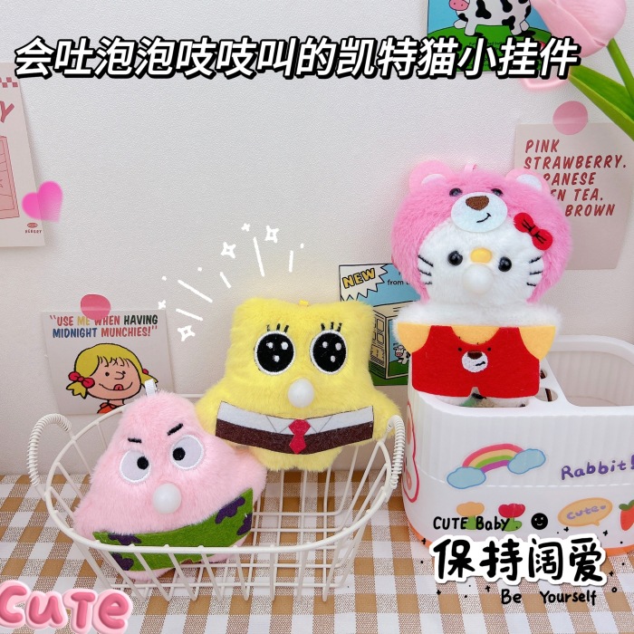泡を吐くいちご熊kt猫小ペンダント創意派大星スポンジ赤ちゃんぬいぐるみキーホルダー