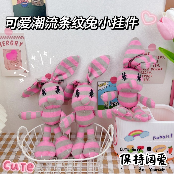 ファッションの服の部品のストライプの長い耳のウサギのぬいぐるみのキーホルダーはかわいいです。