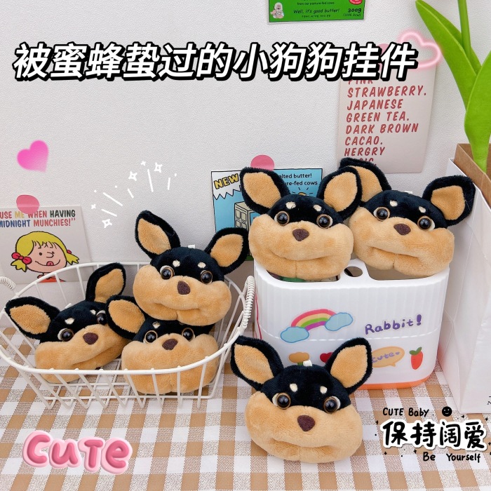 奇妙なおもちゃがミツバチに刺された子犬のキーホルダーは創造的なぬいぐるみ人形のかばんに飾られている