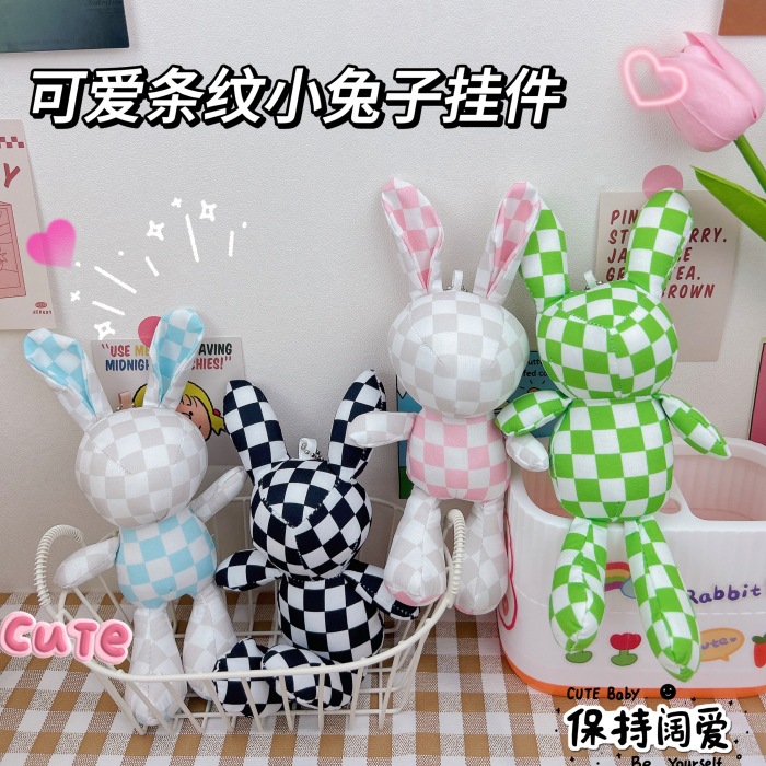 新しい白黒の格子の小さいウサギのぬいぐるみの掛け物の人形のウサギの布芸の鍵はかばんを掛けて卸売りを飾ります。