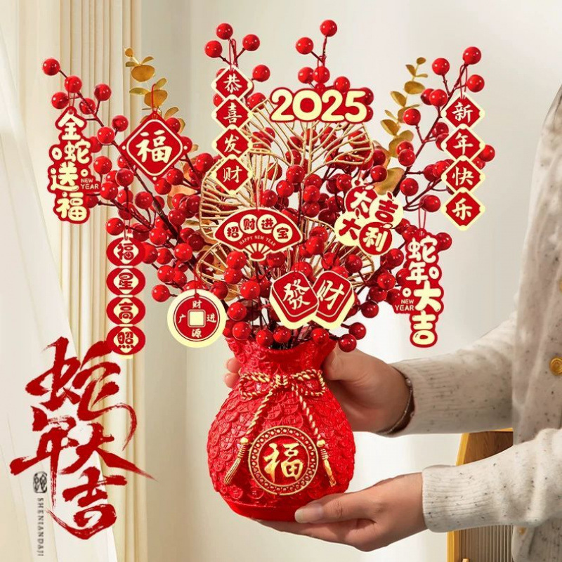 新年のリビングルームの装飾フォーチュンフルーツバケツ装飾品 2025 蛇年新年春祭り雰囲気装飾装飾用品