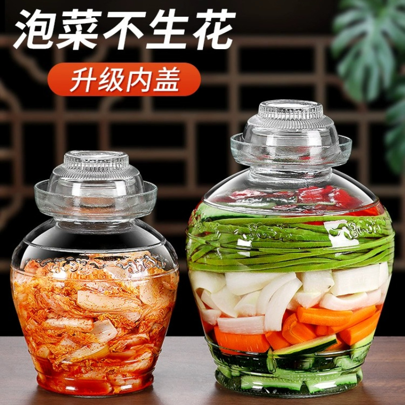 四川ピクルス壺、家庭用壺、密封瓶、ガラスピクルス、キャベツのピクルス、密封された厚みのある瓶、昔ながらのピクルスタン