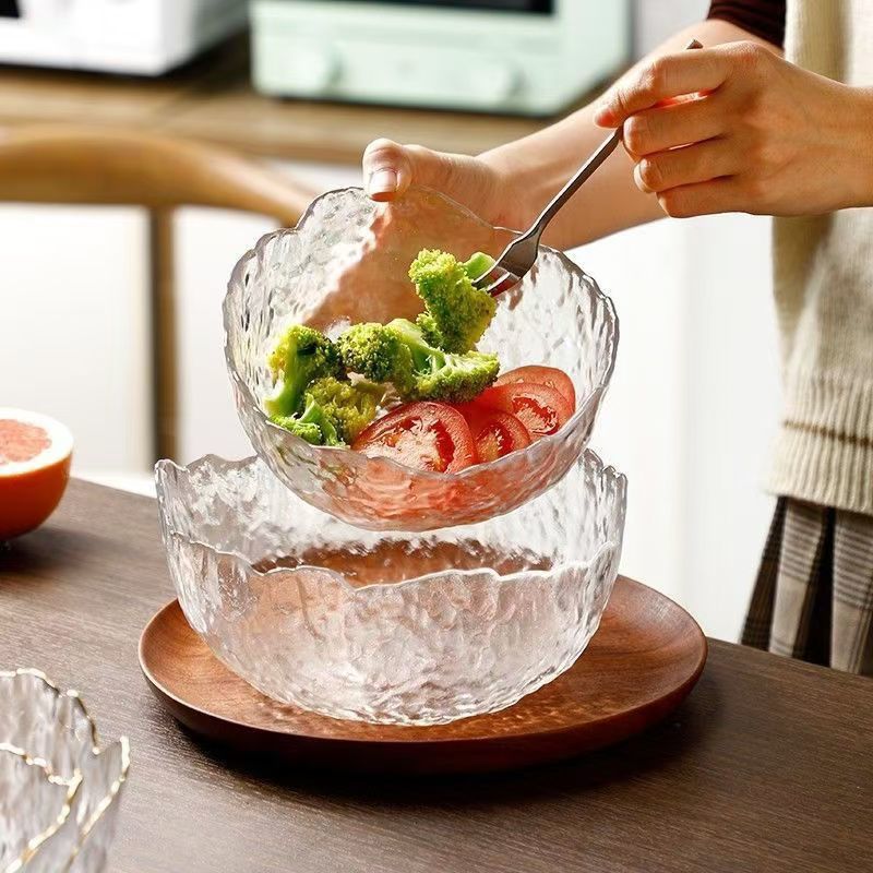 日本製槌目インガラスボウルサラダボウルセットホームフルーツプレートクリエイティブ北欧スタイル食器デザートボウル