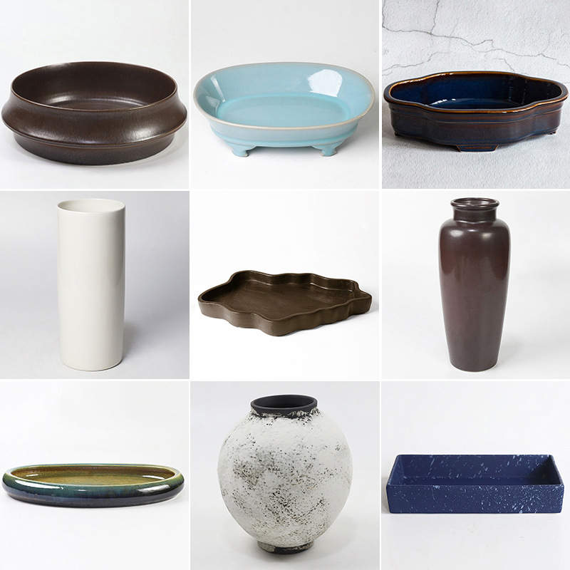 陶磁器の円盤の花盤の花器の中国式の日本式の花道の生け花の器の鉢の花瓶の置物