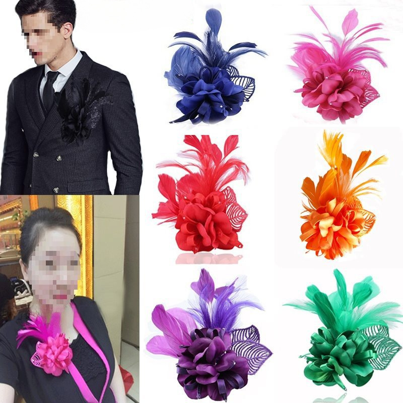 韓国版の女性のレトロなローズブローチスーツ男性新郎新婦ホストフェザーブートニア韓国版大輪