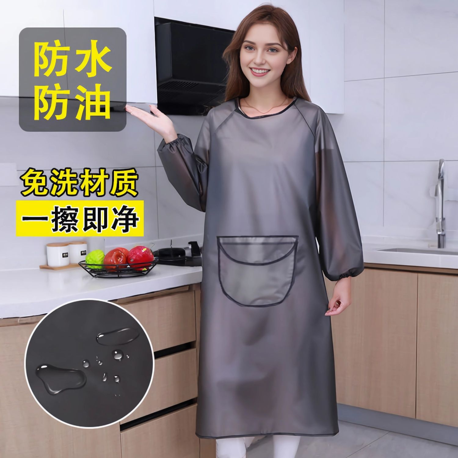 洗濯不要の新素材延長スモックキッチン防水防油長袖耐油水産家庭用エプロン男女作業服