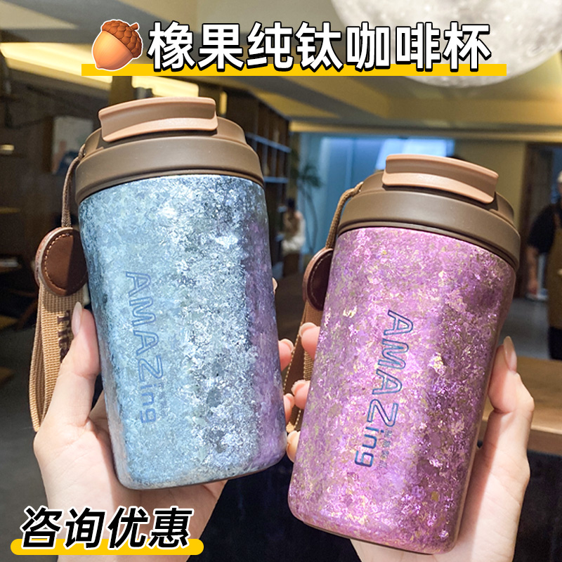 纯钛保温杯钛杯咖啡随行杯子便携水杯吸管杯女士男士杯子