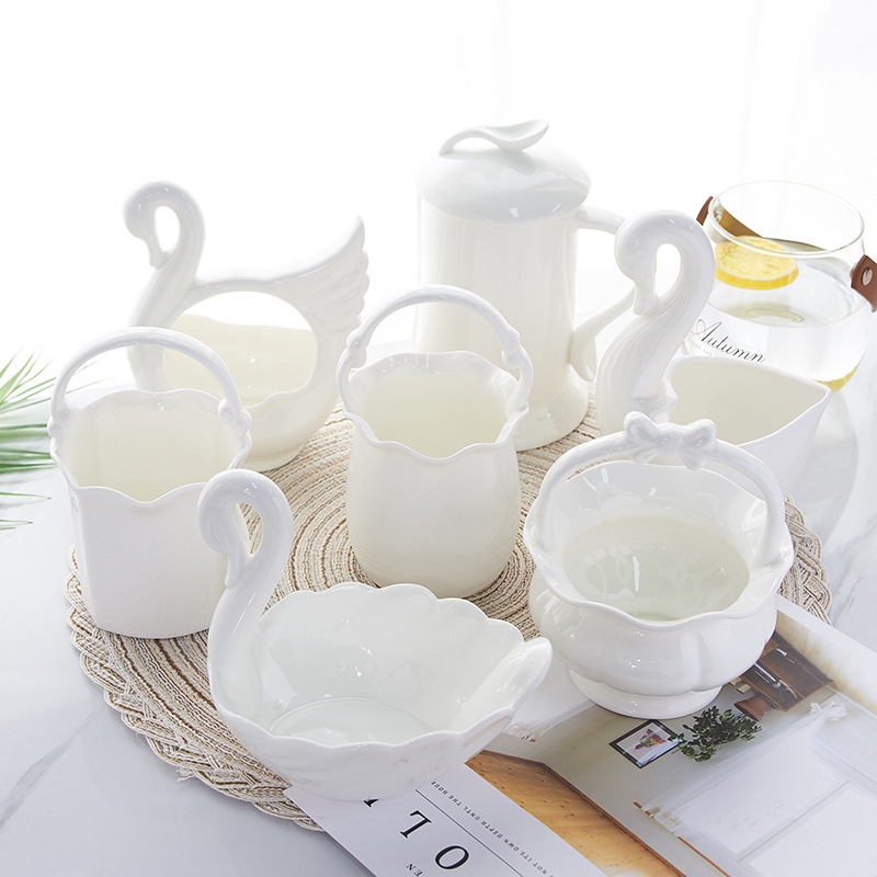 家庭用骨磁器箸立てナイフとフォーク籠シンプル収納筒陶磁器箸箱白鳥花かご箸籠置物棚