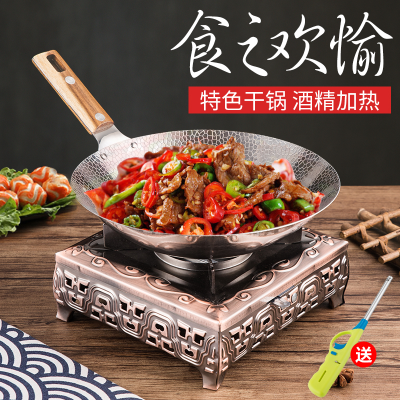 乾燥鍋の子のアルコールストーブはステンレスの固体の液体の小さい鍋のセットのホテルの業務用湘菜の小さい炒め物の鍋を厚くします。