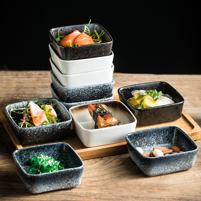 和風陶器小皿、家庭用スナック、フルーツスナック皿、角皿、お茶菓子、ディップボウル、調味料皿