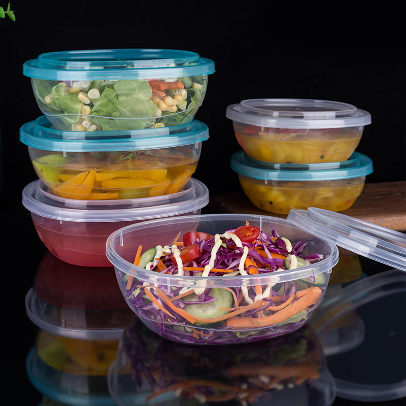 厚みのある鮮度保持ボックス、10個入り、電子レンジ対応サラダボウル、プラスチック製食品グレードのランチボックス、密封された包装箱、ファーストフードスープボウル