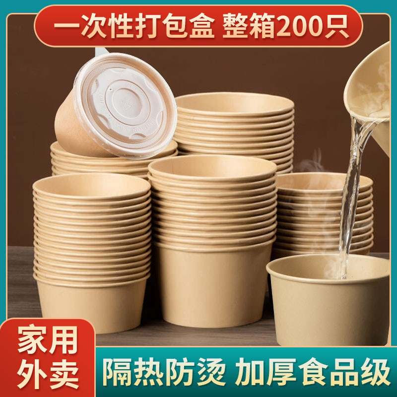使い捨て弁当箱、ボウル、箸、紙ボウル、弁当箱、フルーツテイクアウト、丸型食品グレード、家庭用および業務用、蓋付き卸売