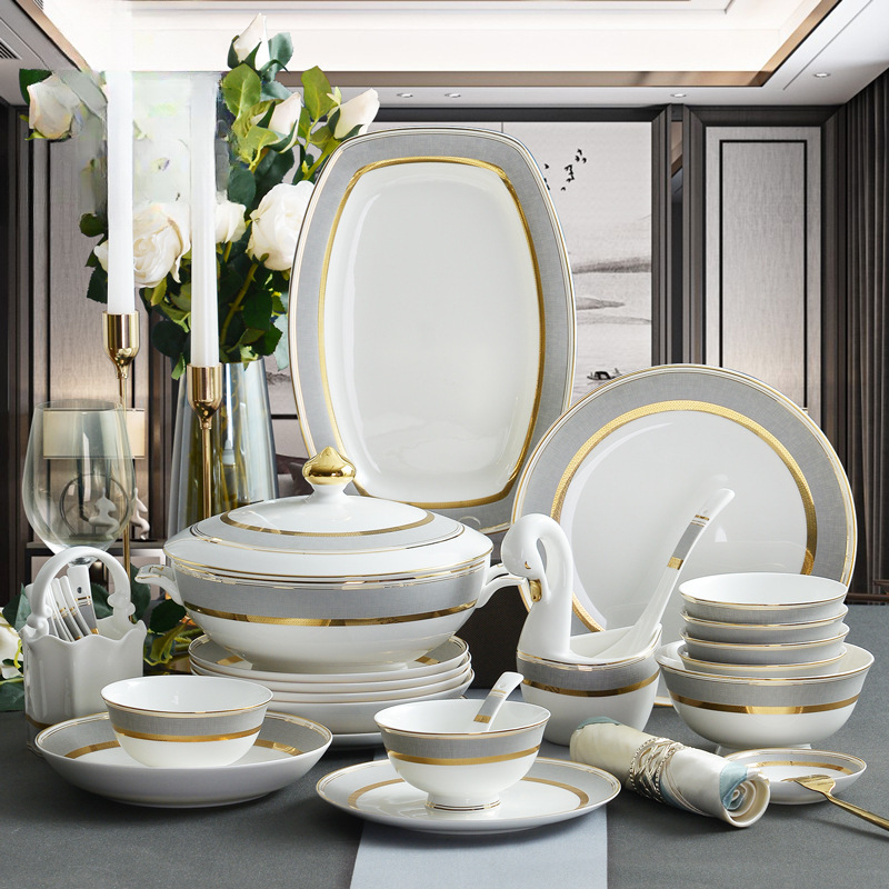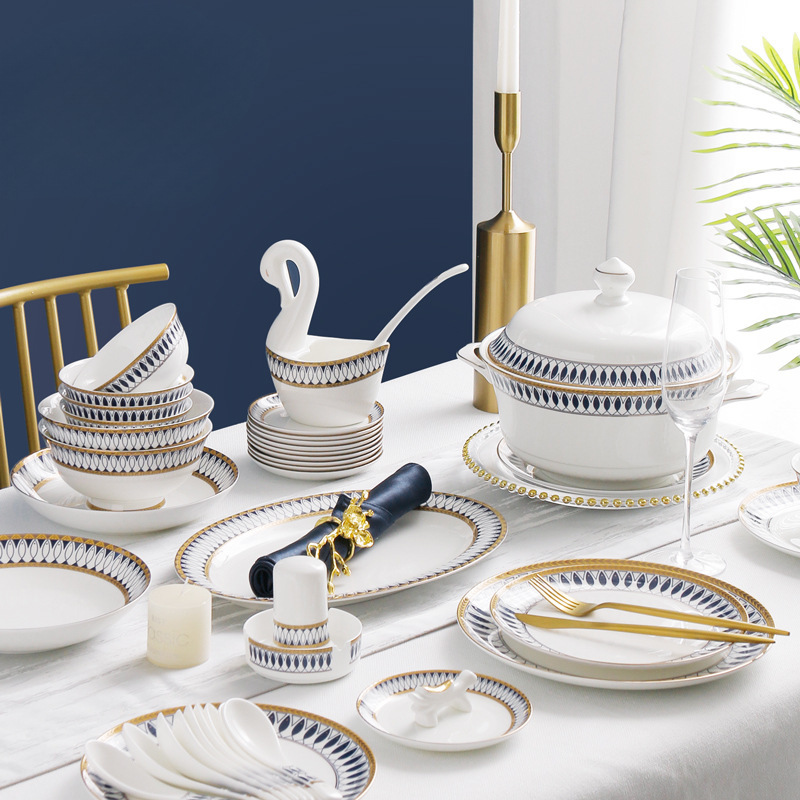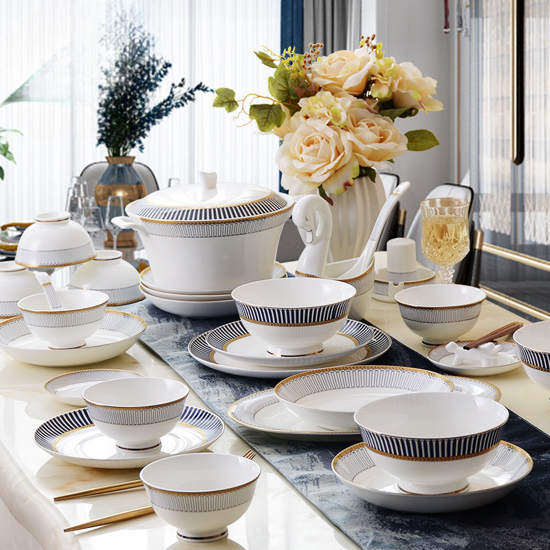 60 スカルチャイナ食器セット 10 人用家庭用組み合わせボウルとプレートセット食器ヨーロピアンスタイルのボウルとプレートセット食器