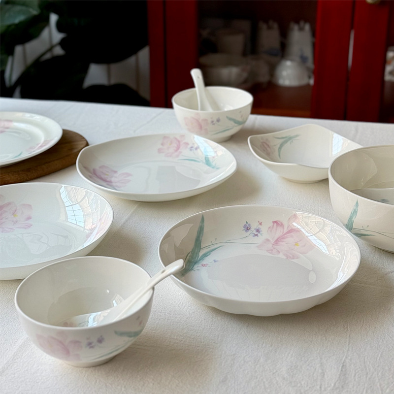ボーンチャイナ食器ボウルとプレートの組み合わせ家庭用ヌードルボウルシングルライスボウルプレート魚プレートボーンプレート自由にマッチングボウルとプレート