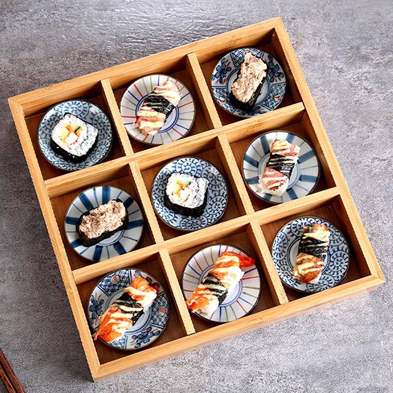 和風料理九方格子食器バーベキュー店食器竹箱マルチグリッドスナックプレート寿司竹箱ディナープレート