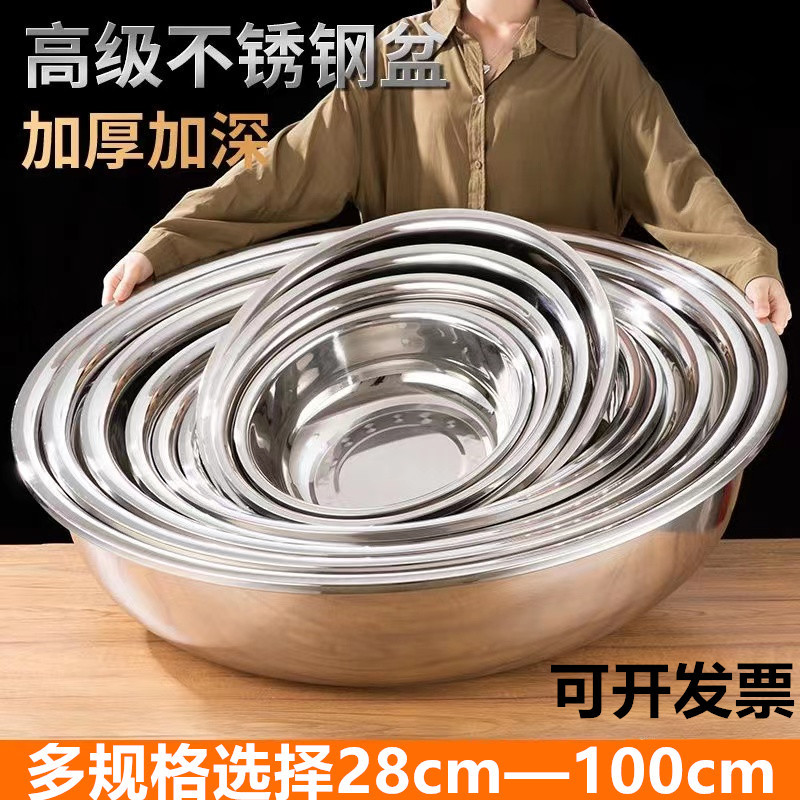 丸型ステンレス製大型洗面器、厚みのある浴槽、洗濯洗面器、野菜洗面器、足湯洗面器、洗面器、野菜洗面器、洗面器