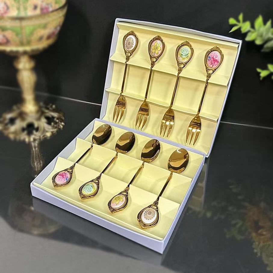 宮廷風デザートフォークスプーンヨーロッパ風コーヒースプーン果物フォーク茶スプーン調味スプーン祝日プレゼント