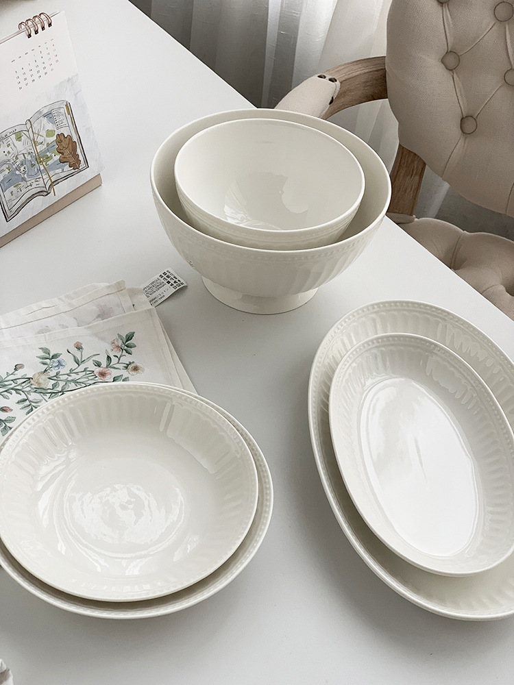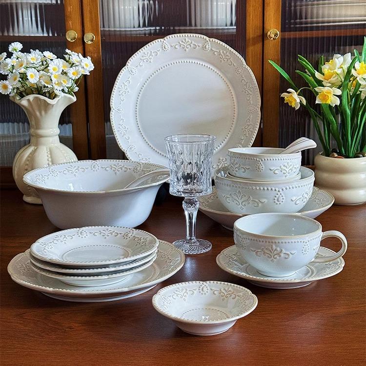 波西塔原単尾品フランス軽豪華浮き彫りローマシリーズ純色シンプル陶磁器食器皿碗