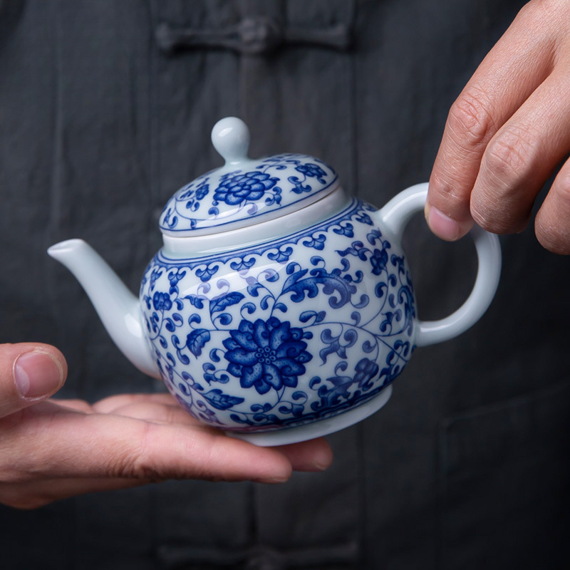 景徳鎮の陶磁器の模造のティーポットの陶磁器の家庭用の単壺の青と花の磁器の工夫の茶器のプーアルは茶器の贈り物を入れます。