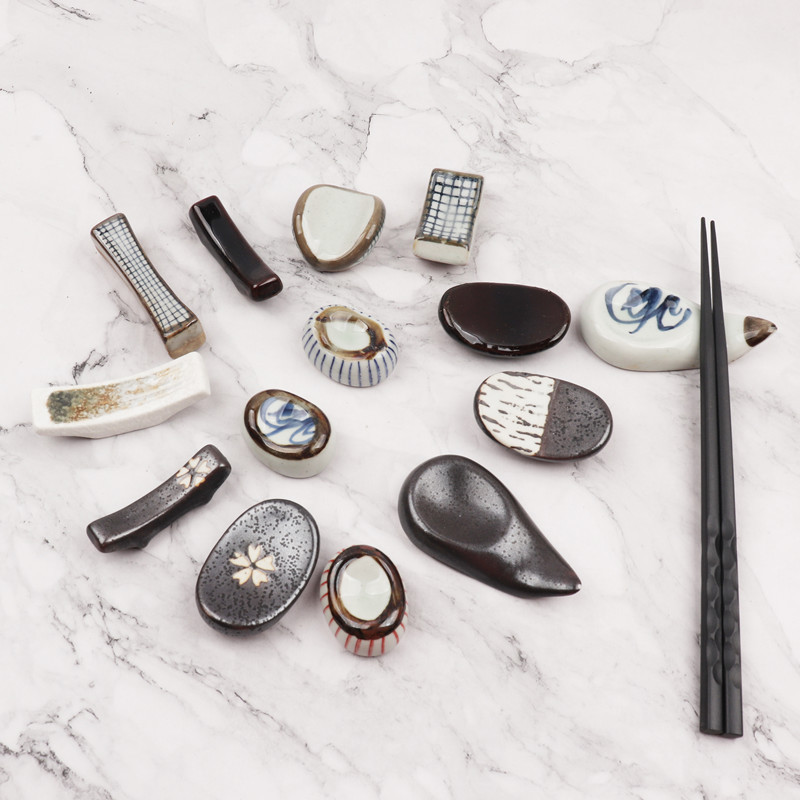 日本式箸置きスプーントレー置物三分焼陶磁器日韓レストランホテル黒桜食器