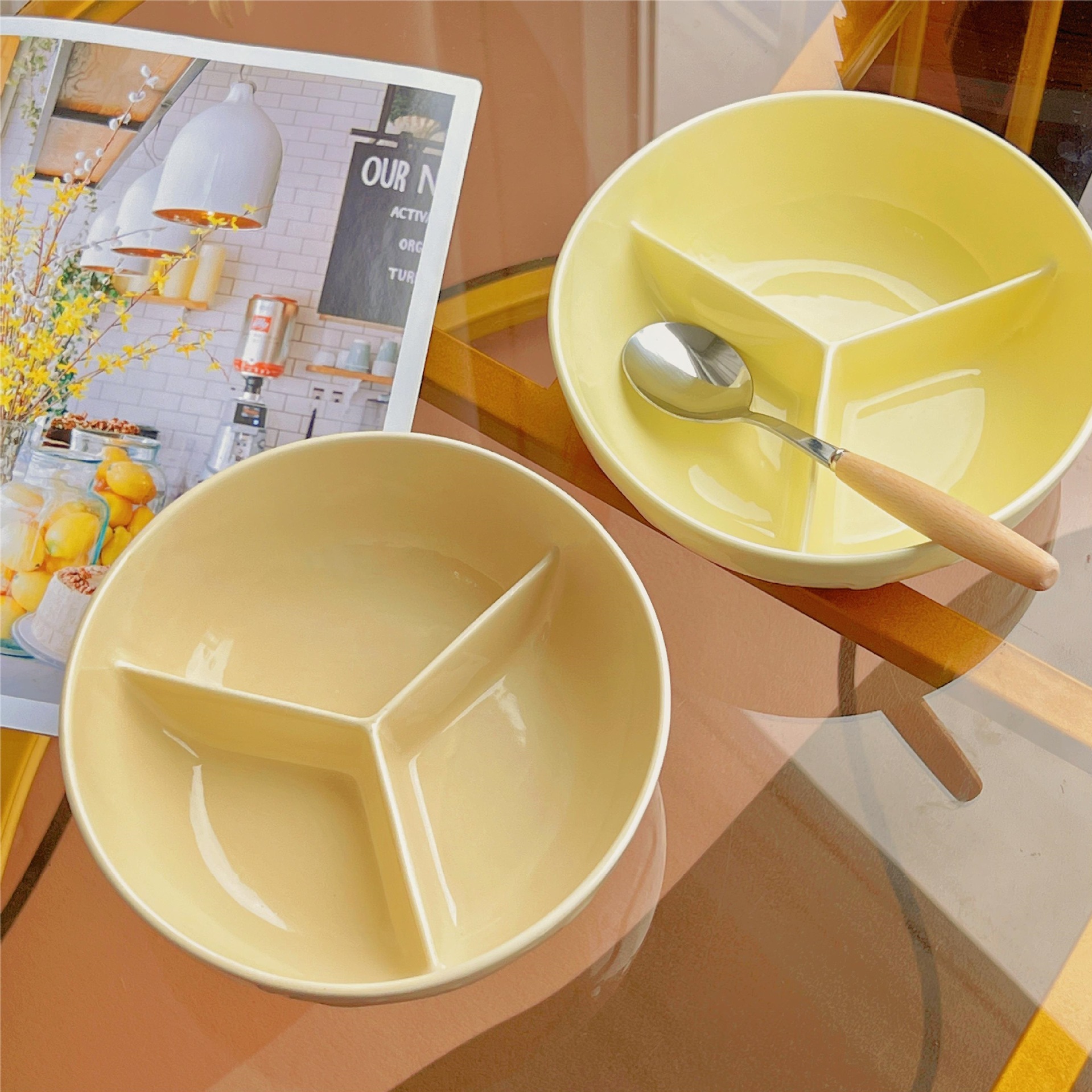 美しい陶磁器の三格は蓋付きの皿を深めてダイエットして食事をコントロールします。
