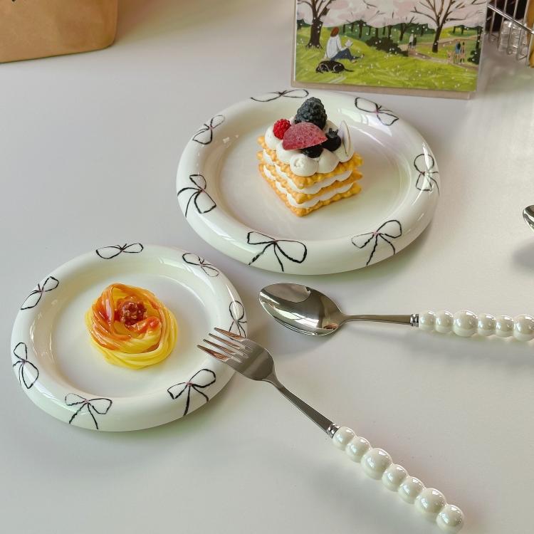 韓国ネット紅博主ins高颜値蝶結びスイーツ菓子皿パスタ朝食皿