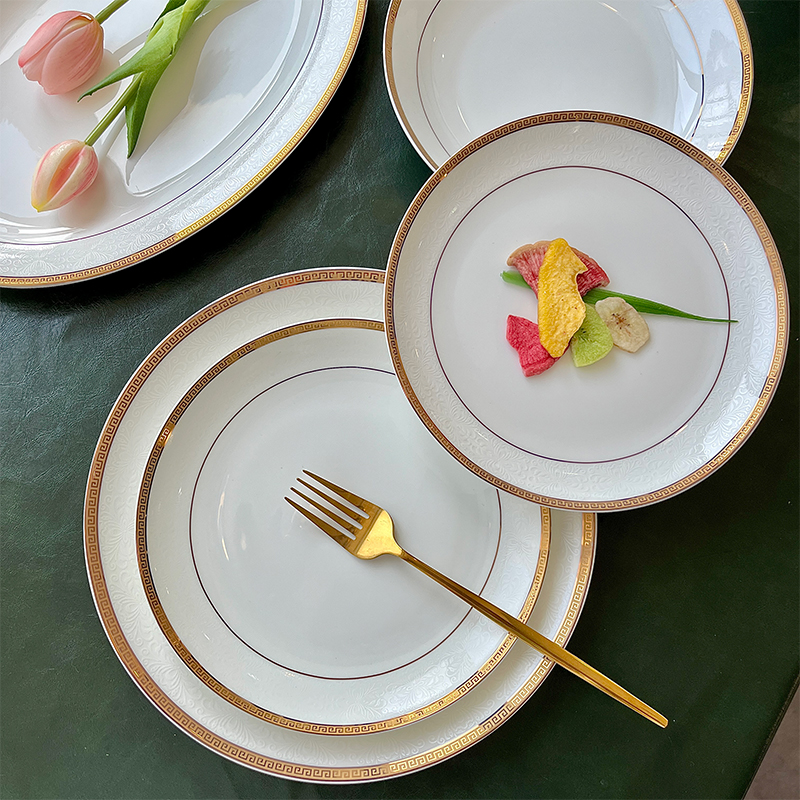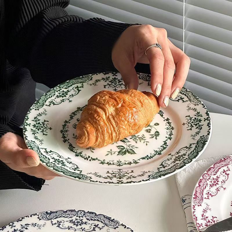フランスのディナープレート、高価値のアンティークセラミック、レトロな朝食ケーキ食器、家庭用洋食デザートプレート