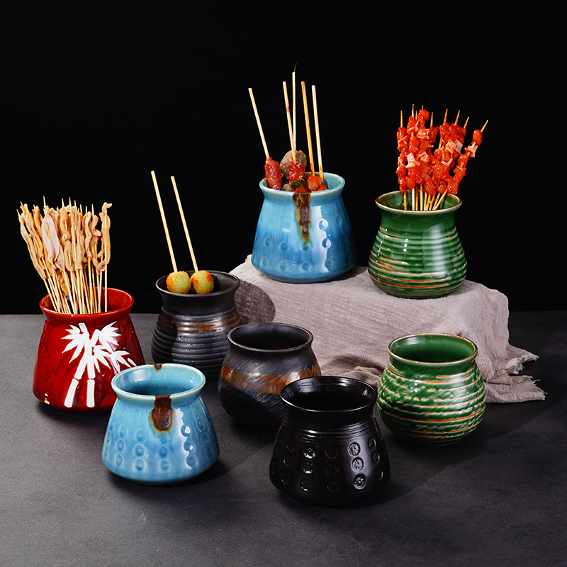 日本のセラミックジャー、クリエイティブな串ジャーカップ、丸い鍋スプーンジャー、バーベキューカップ、鍋ピックジャー、パーソナライズされた箸チューブ