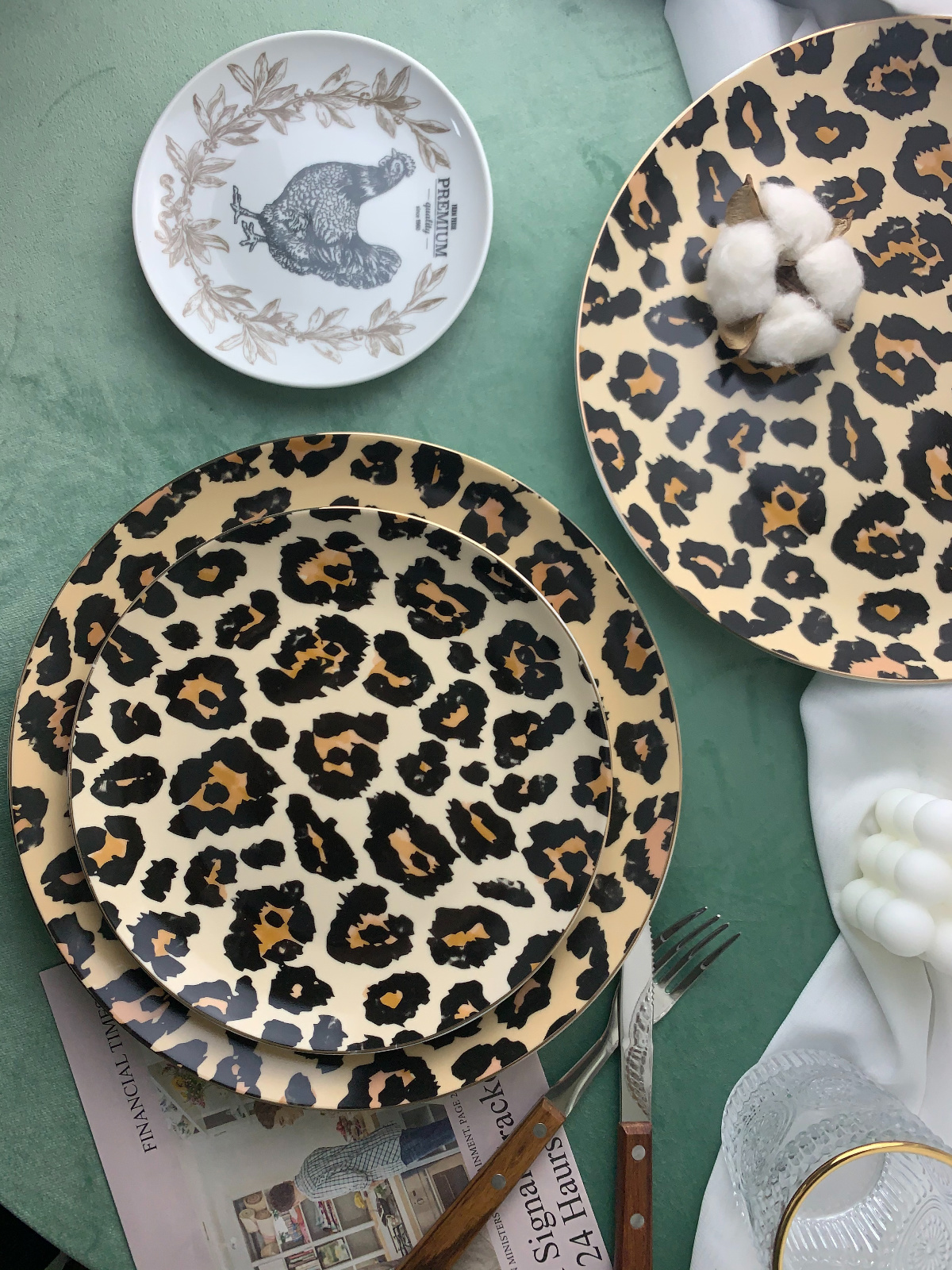 ディスクセラミックプレートステーキプレート家庭用朝食プレート洋食プレートサラダプレートインクリエイティブヒョウ柄