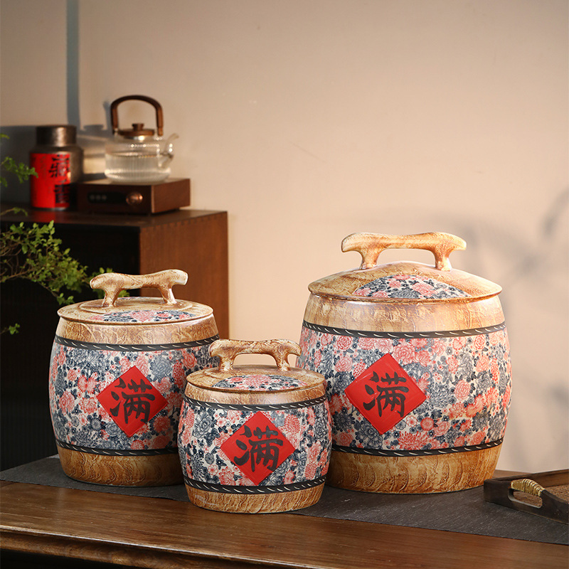 景徳鎮セラミック米タンク家庭用米バケツ小麦粉貯蔵タンク密封防虫防湿穀物レトロ中国風