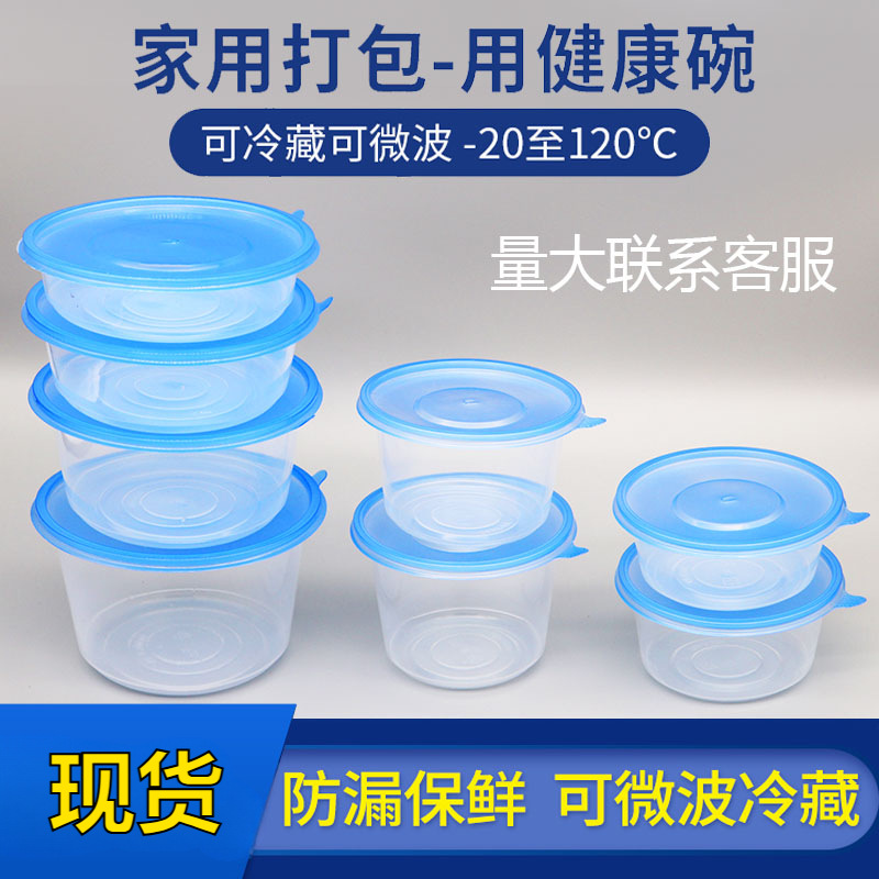 青い蓋付きの厚みのある使い捨てプラスチック製のランチボックス、ランチボックス、スープボウル、丸いテイクアウトのファーストフードボックス、密封