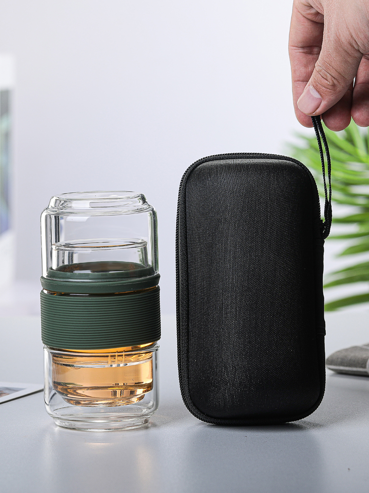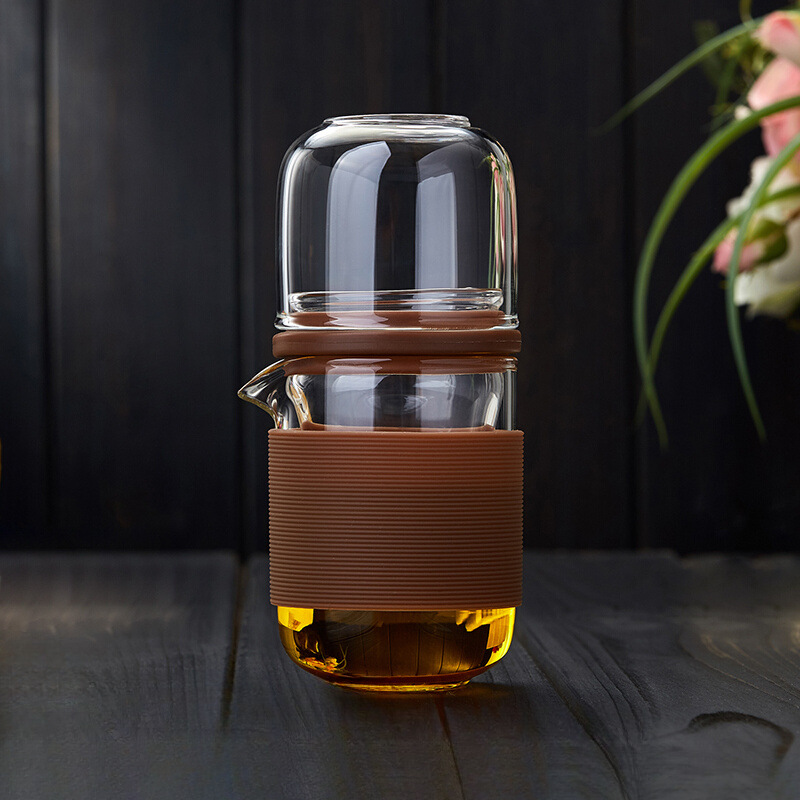 ガラス旅行茶器セット茶水分離屋外携帯工夫泡ティーポット耐熱1ポット2杯快客カップ