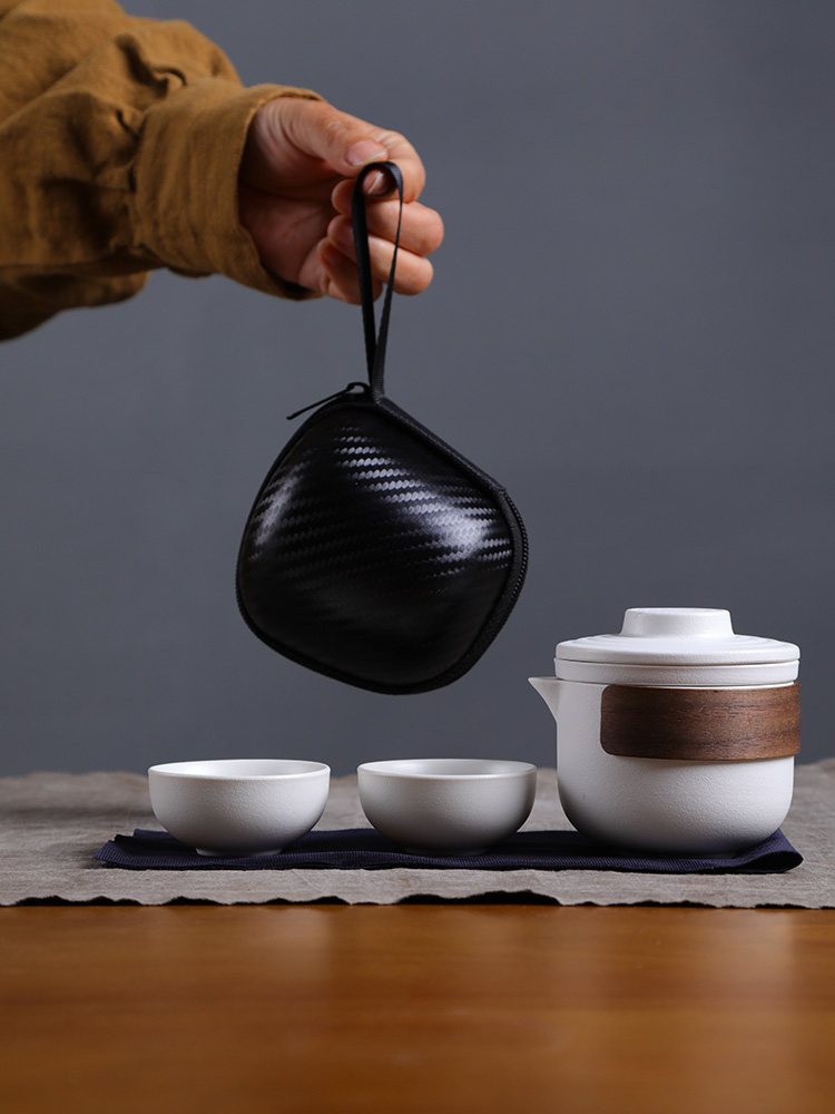 旅行茶器携帯セット屋外キャンプ旅行ティーポット陶磁器カップ1ポット2杯