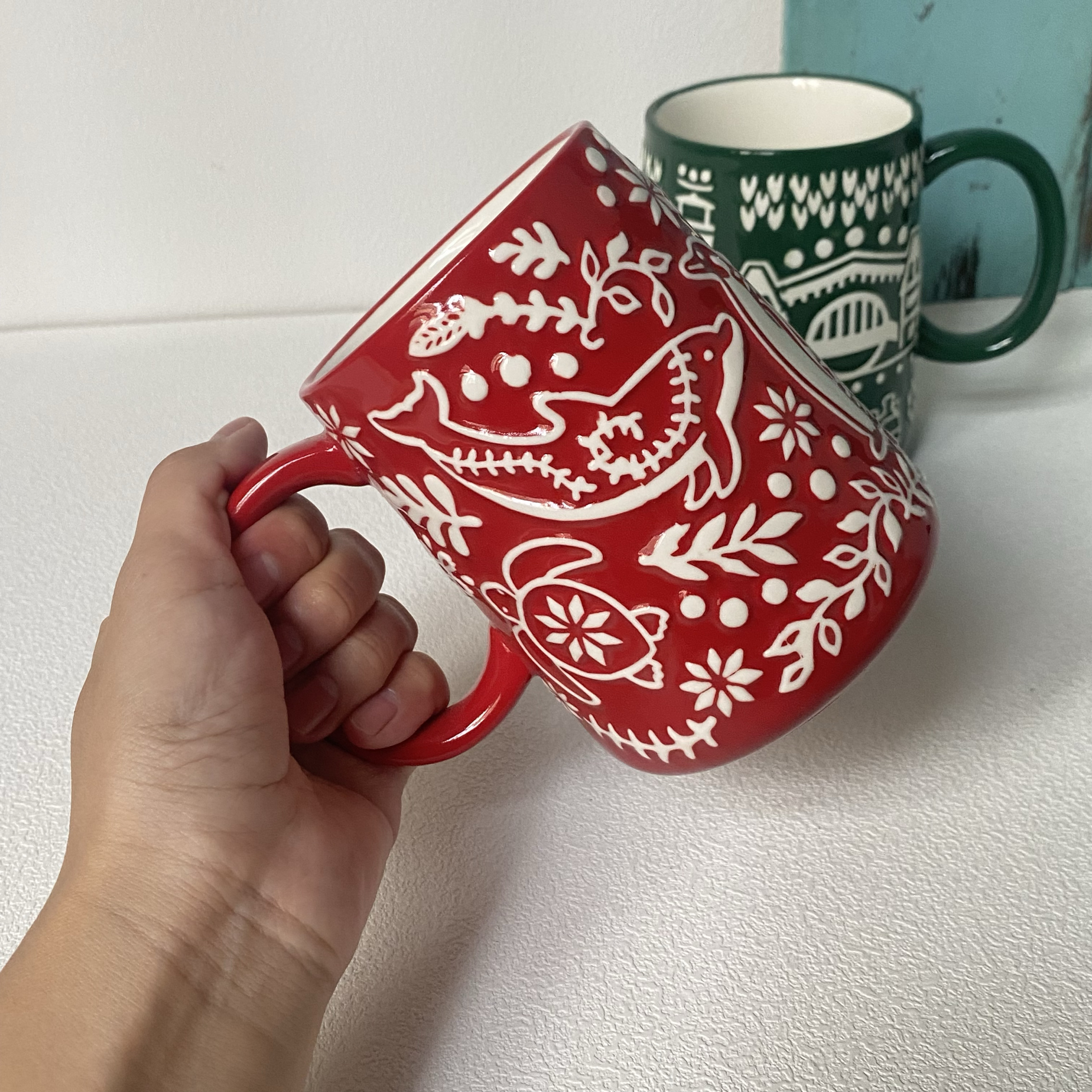 セラミックカップ大容量マグカップレリーフクリスマス风ミルクカップコーヒーカップ家庭用