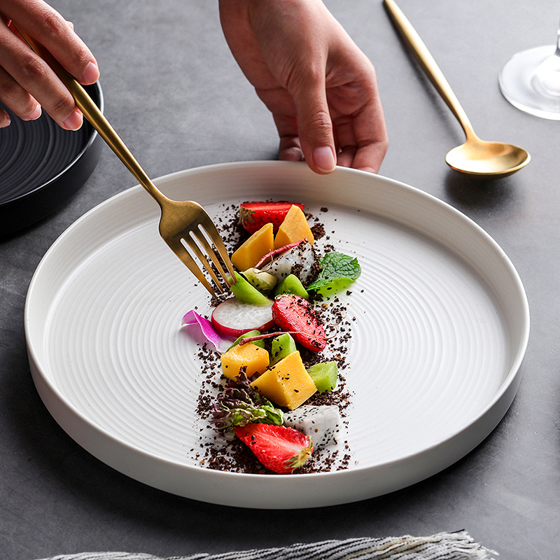 骨磁器10インチ円形ステーキ皿洋食皿家庭用平盤ねじ皿浅盤麦わら帽子皿感食器