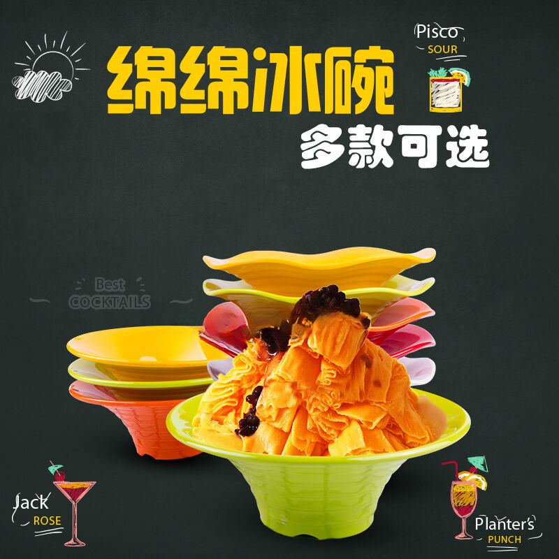A5メラミンかき氷ボウルカラー綿氷ボウル果物すくいボウル黒雪氷ボウル甘い店用模造磁器食器