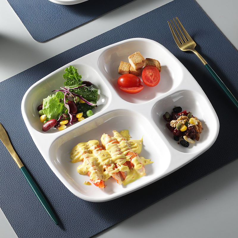 メラミン分格食事皿四格模造磁器プラスチック皿商用レストラン食堂ファストフード食器セット仕切食事皿