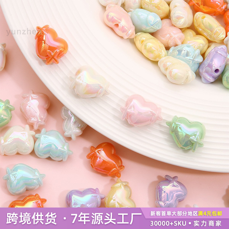 アクリル透明カラフルな愛桃心サンドイッチビーズ手作りdiyブレスレットバッグチェーンアクセサリー材料