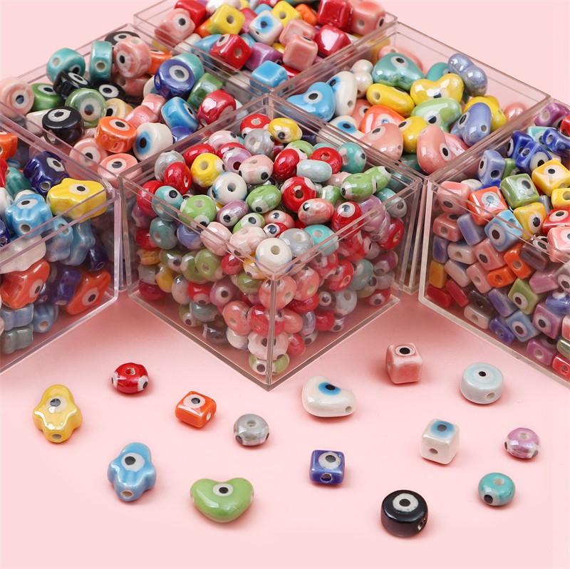 日系趣味陶磁器両面プリント目ビーズ手作りdiyブレスレットイヤリングビーズアクセサリー