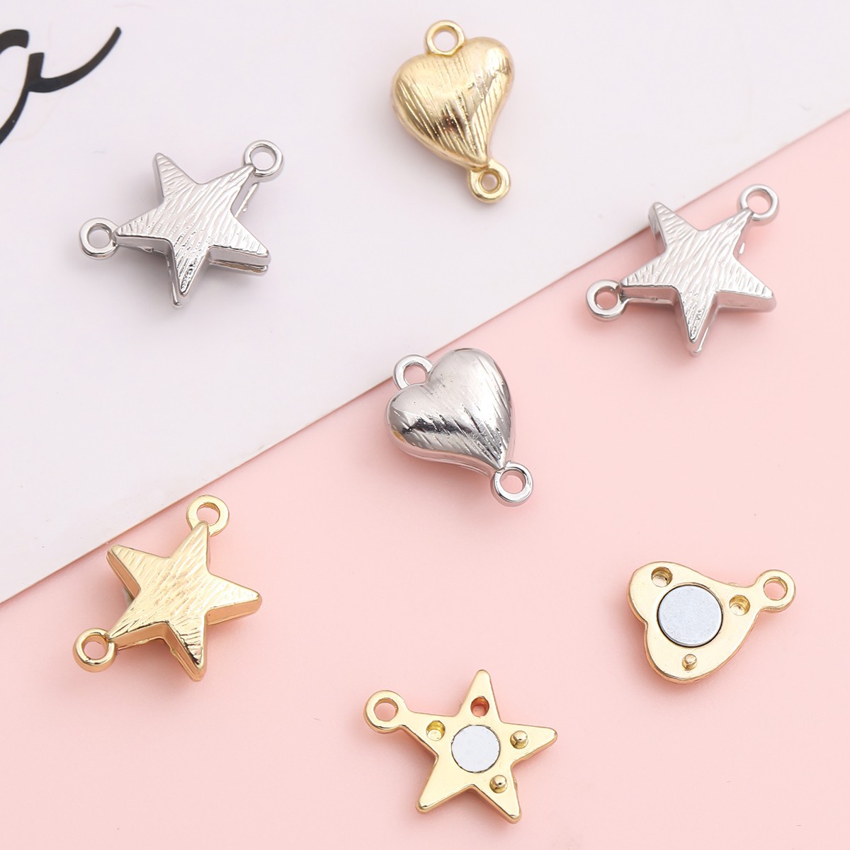 シンプル合金愛五角星双吊磁力ボタンdiy手作りビーズブレスレットネックレス尾ボタンアクセサリー