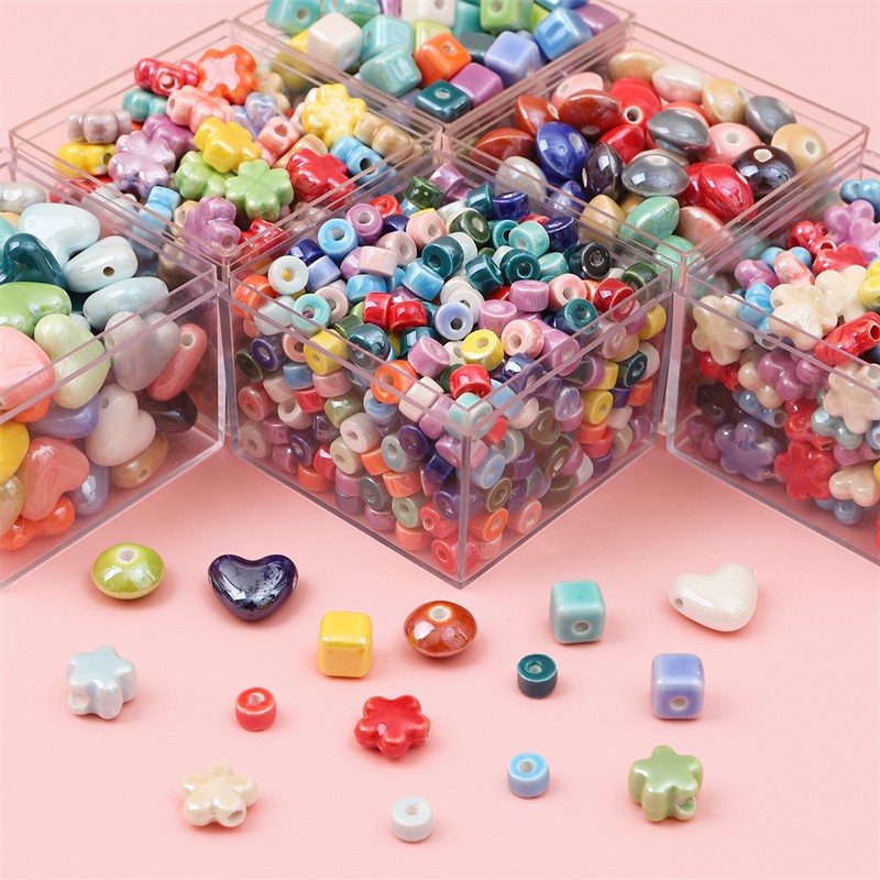 シンプルなカラーセラミック光沢愛五弁花ビーズ散珠diy手作りビーズブレスレット装飾品部品