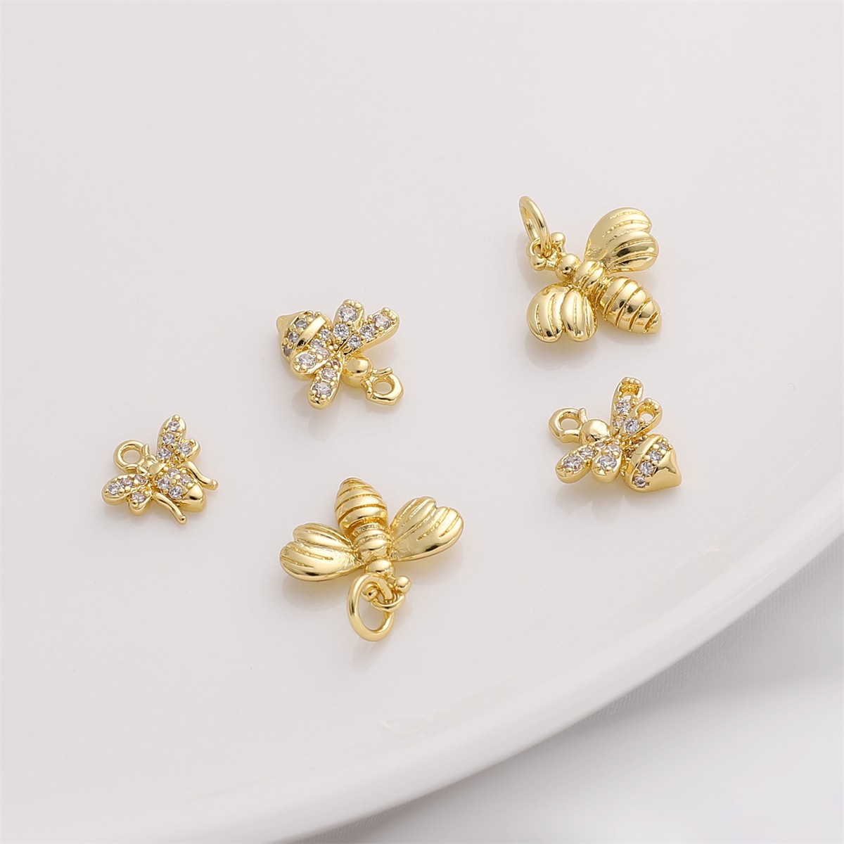 銅メッキ14k金色保色ミニミツバチペンダントペンダントdiyネックレスイヤリングアクセサリー材料手作りアクセサリー