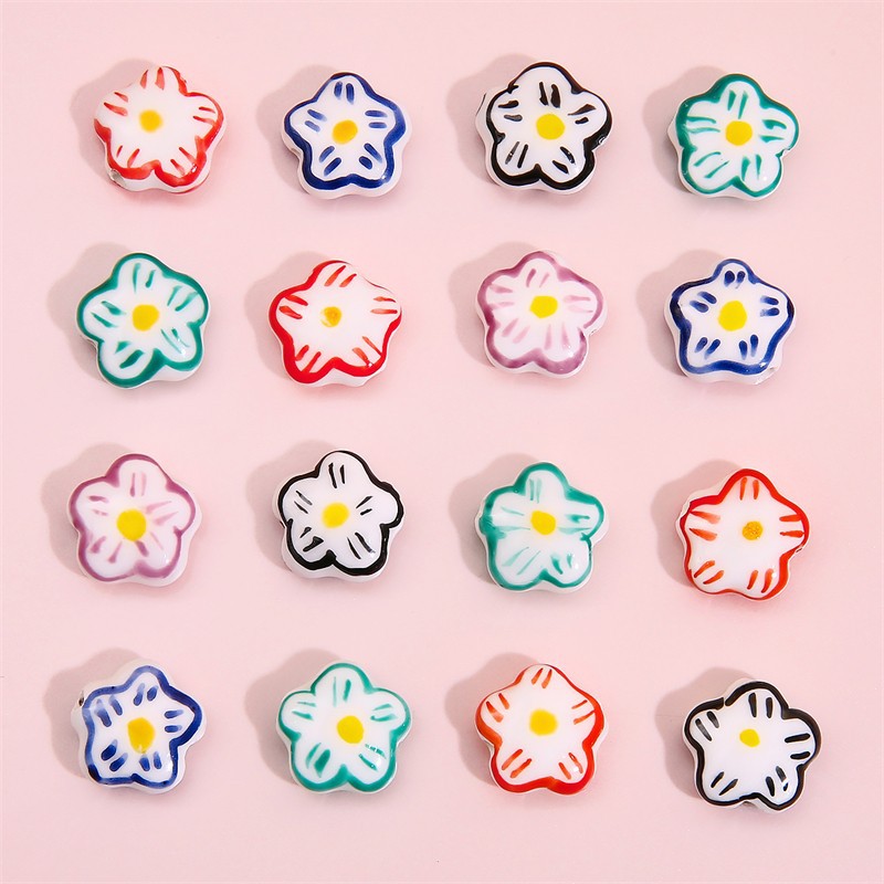 不規則な五弁花陶磁器両面手描きプリントビーズdiy手作りブレスレット耳飾り携帯チェーンペンダント材料