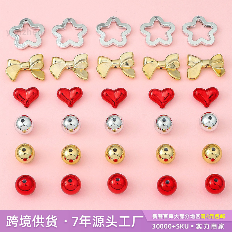 アクリルメッキuv丸珠桃心蝶結びビーズ手作りdiy製ネックレスイヤリングアクセサリーストラップ