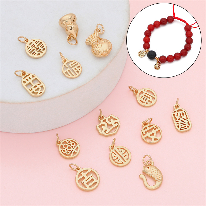 保色唖金錦鯉瓢箪福牌双喜平安如意ペンダントdiy手作りブレスレットネックレスアクセサリーペンダント
