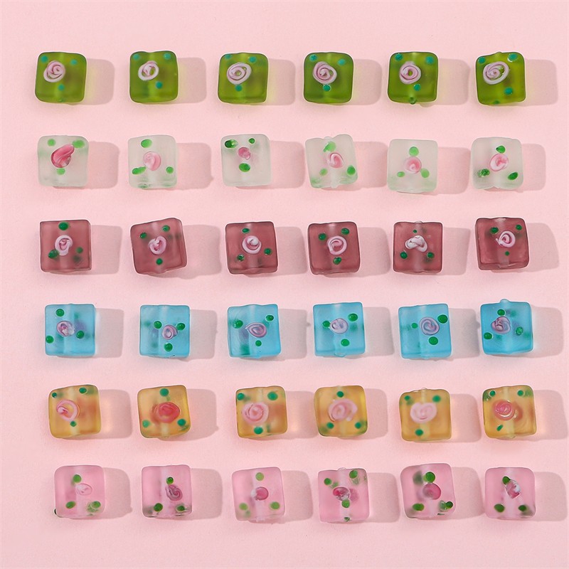 紫のシンプルな手描きの砂の瑠璃の方珠の散珠diyの手作りのブレスレットの耳飾りのアクセサリーの数珠の材料