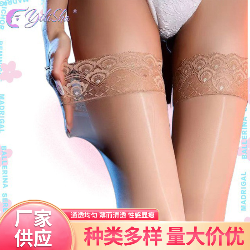 孔雀レースの膝の靴下の極光の靴下の長い筒の馬油の靴下の薄いタイプのセクシーな油の明るい光のストッキングのシリカゲルの滑り止め