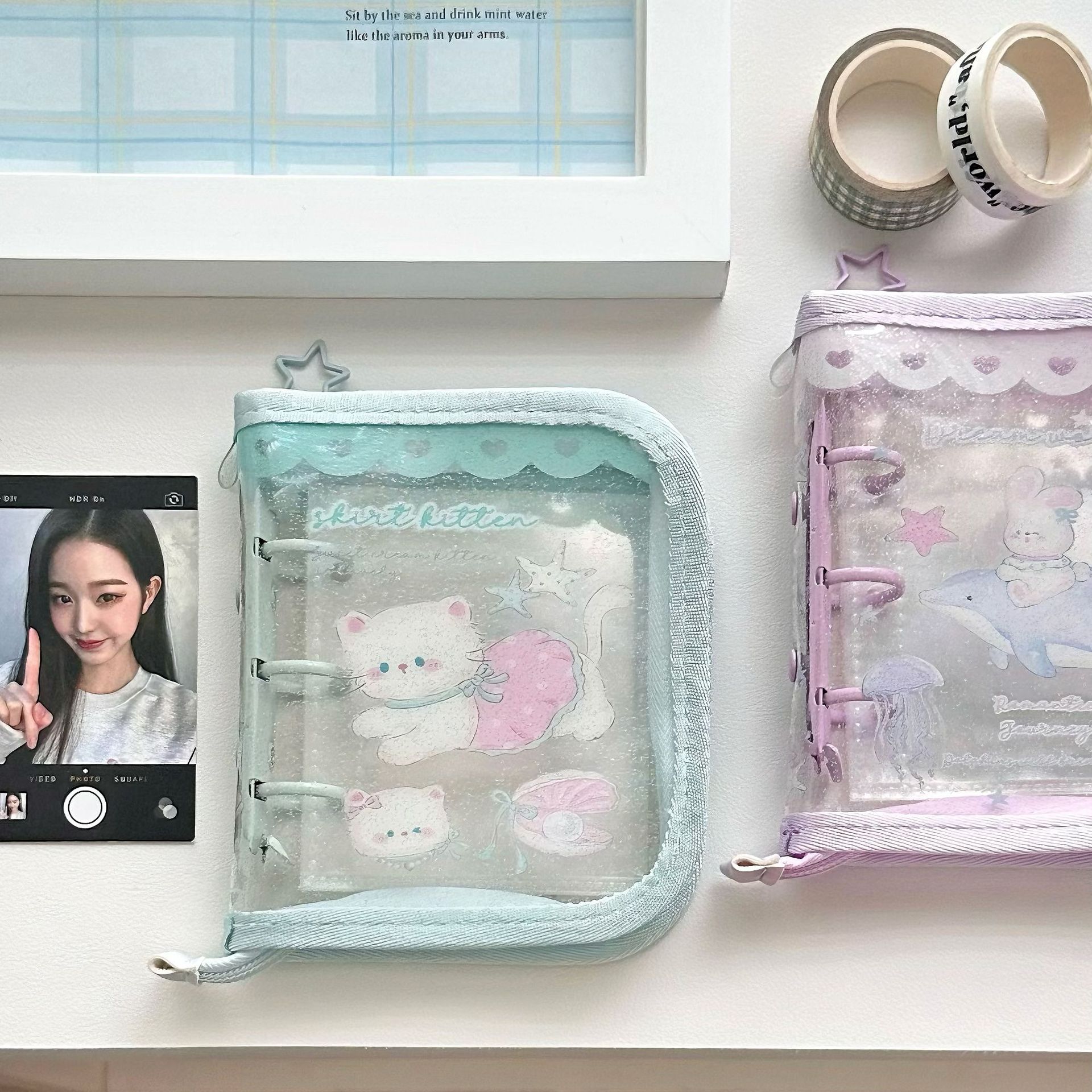 3穴海底星空クジラPVCジッパー縁取りハンドブックポータブルネイルアートフォトアルバムアイドルフォトカードスターアップストレージ