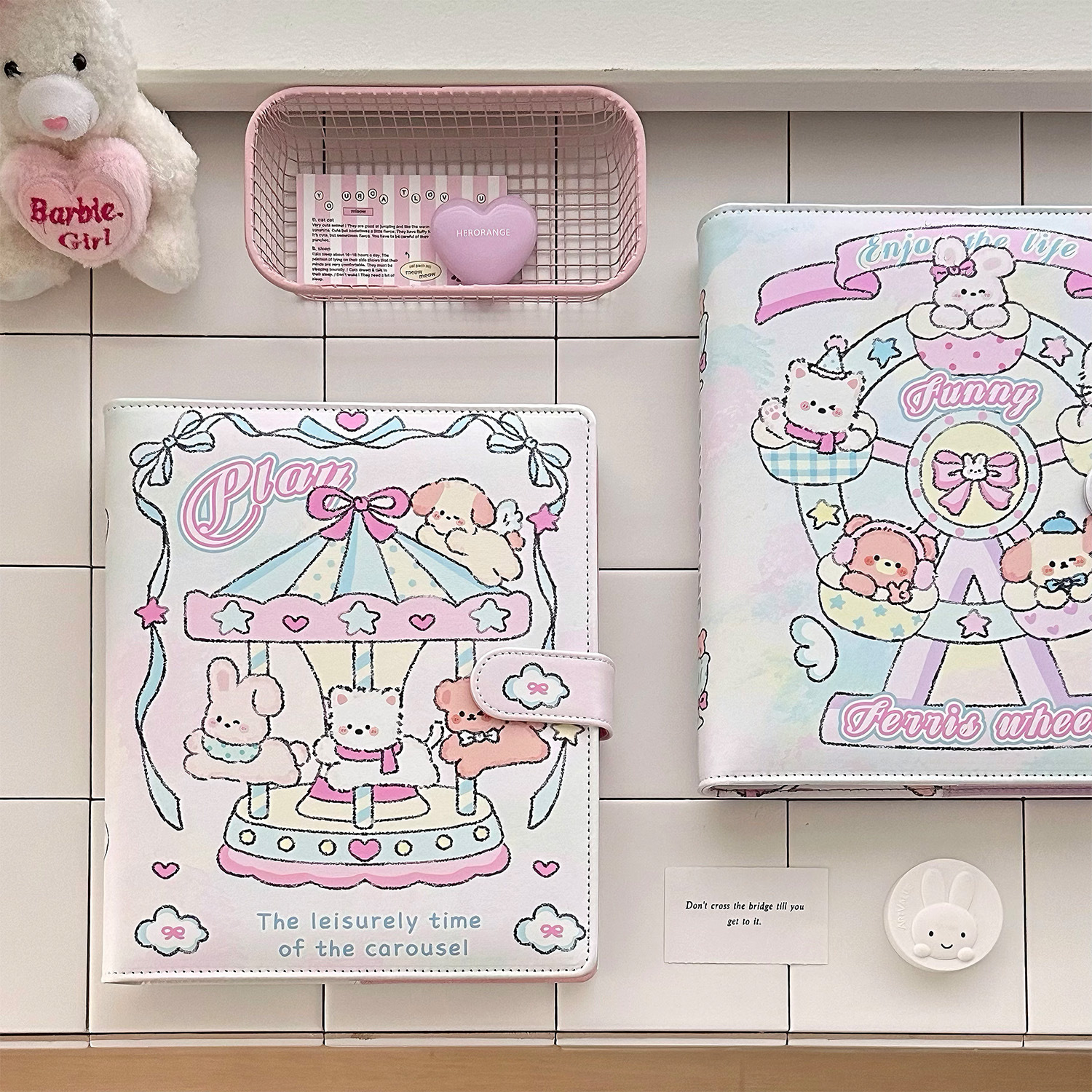 かわいい PU ルーズリーフ 6 穴フォトアルバム遊園地 A5 拡張四角形かわいい漫画マグネットバックルブック 3inch スターチェイスフォトアルバム